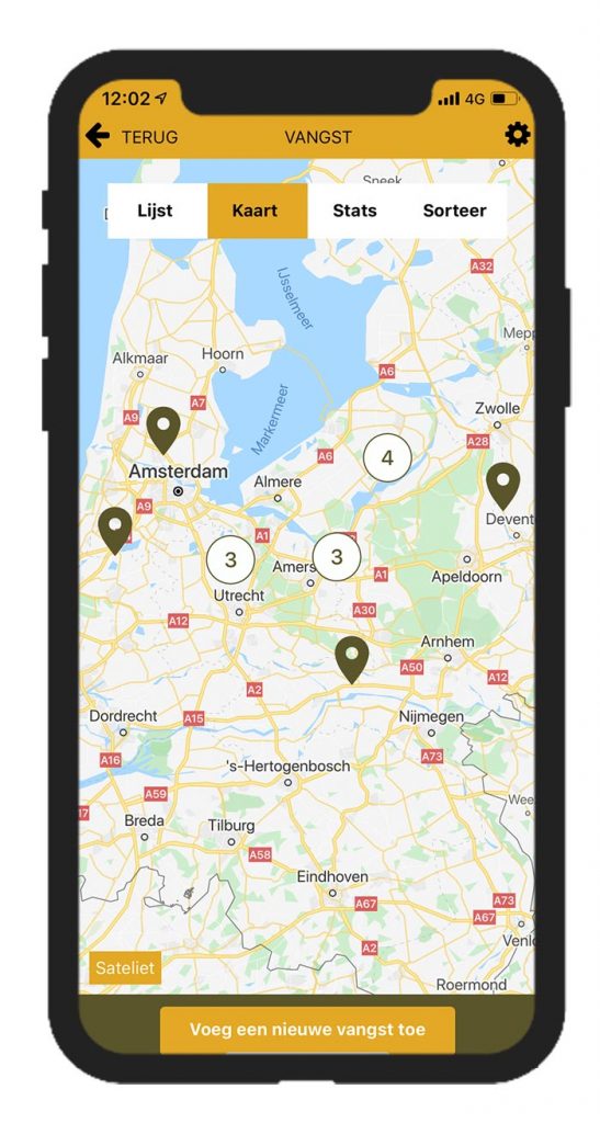 - Voeg vangsten toe op de interactieve kaart met GPS