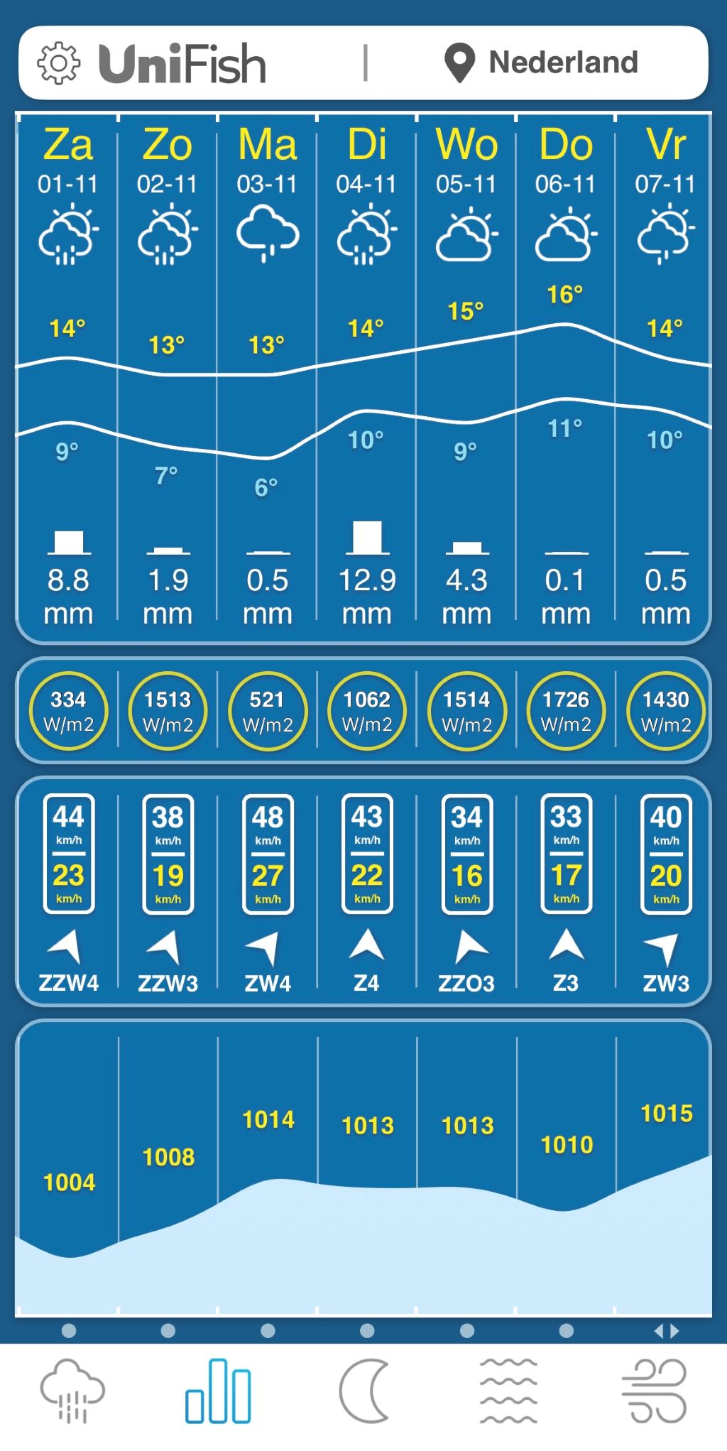 Inmiddels is het wintertijd: lange najaarsnachten, kortere dagen… We zijn al diep in het najaar en dat betekent dikke karpers vangen! Zeker met het weer wat er de komende week aan komt: luchtdrukwisselingen, wisselvallig weer, relatief warm en een lekkere zuidenwind. Perfect voor de karpers om nog even je voerstek leeg te ‘schranzen’ en om als karpervisser daarop in te spelen;-) Succes!
