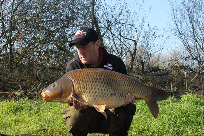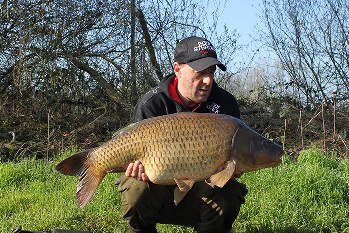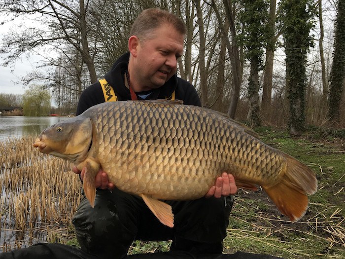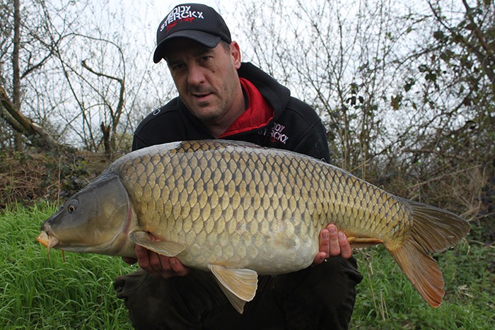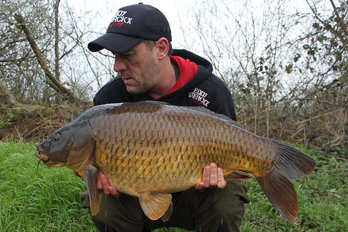 Stef Visscher begon zijn dag goed met deze 34 pond zware kanaalstrijder!
