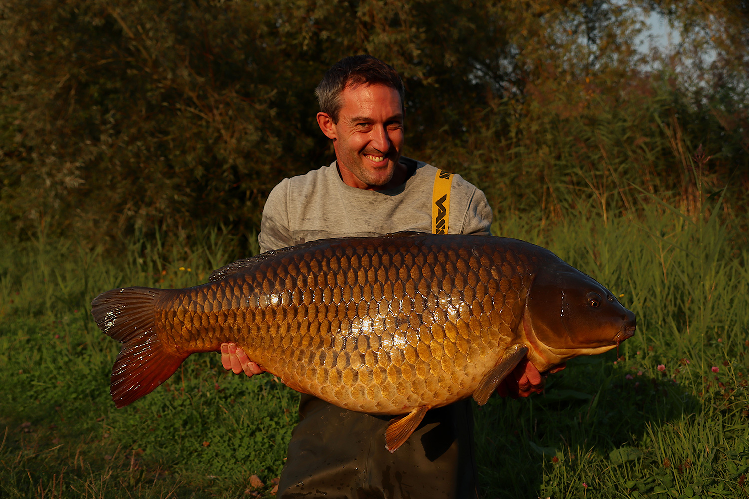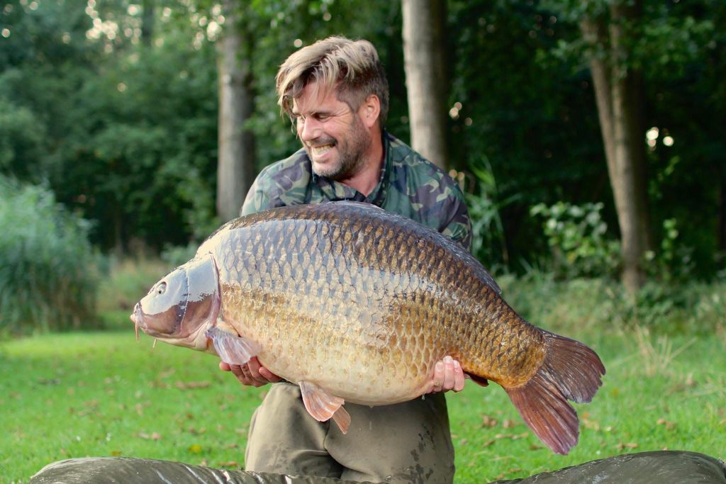 Deze prachtbak van een schubkarper bracht een grote lach op het gezicht van Jan van der Zanden. Niet zo gek, want wat een fantastische vis is dit… Een prachtvangst Jan!