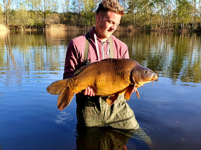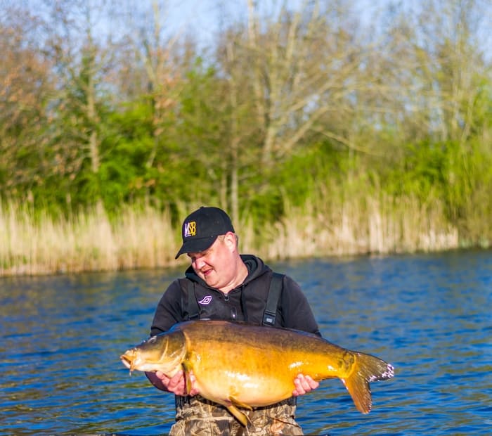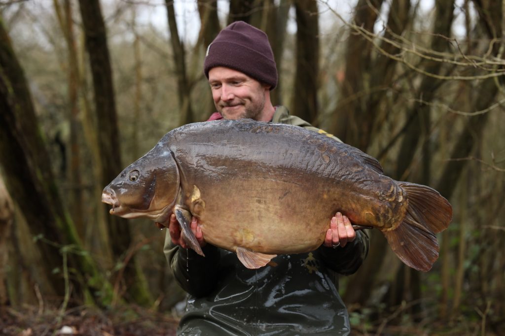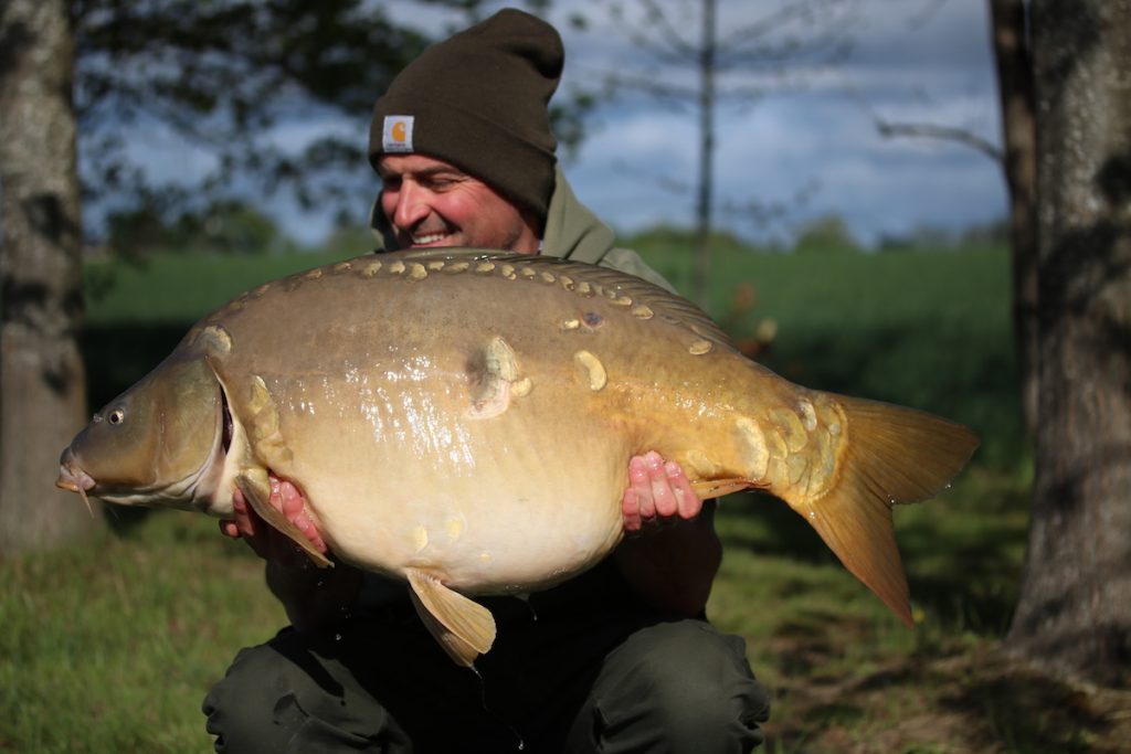Ik zat nog geen uur tot ik een enorme fluiter kreeg, de adrenaline schiet door heel mijn lijf. Het voelde gelijk goed en 20 minuten later ving ik een prachtige spiegel van 47 pond. BAMMM!