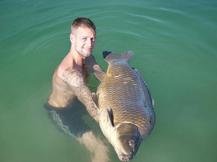 De foto van de week is dit keer voor onze Brabantse amigo Wilco Gerrits. Ook met dit mooie weer bezoekt Wilco regelmatig de waterkant en afgelopen week maakte hij zijn lijnen nat op een wierrijk water. Tijdens het drillen van een gave schubkarper kwam het halve wierbed mee de kant op en in het net moest Wilco dus eerst even zijn ‘cadeau’ uitpakken om er vervolgens mee te poseren. Dit leverde wel een aantal fraaie plaatjes op!