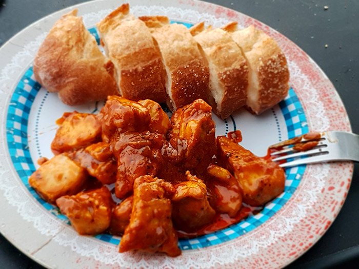 Een leuk detail: Lars had geprobeerd om zelf een hamburger te bakken, maar die viel een beetje zwaar. Tussen het overgeven door moest de schub op de foto worden gezet!