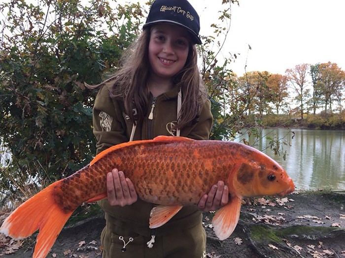 Ook deze koi ontkwam niet aan Fleur’s viskunsten! Knap gedaan 😉