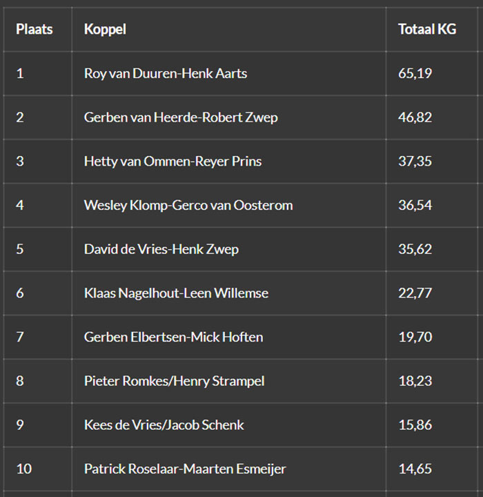 De prijzen werden meer dan goed ontvangen! Duizenden euro’s aan prijzen, zoals Grade, Saga en PolePosition producten gecombineerd met vette en onvergetelijke trips naar de Ebro, Carp Twenty en het Zuidlaardermeer. Sponsoren Sierra Ebro Visvakanties, Carptwenty en Vlotverhuur.nl: hartelijk bedankt hiervoor!