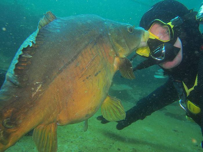 Onder het wateroppervlak is namelijk een waar paradijs voor duikers gecreerd. In dit water zijn verschillende objecten op de bodem te vinden, zoals een vliegtuig en een oude tank. Natuurlijk zwemmen er ook diverse interessante vissen rond, waaronder steuren en diverse (koi) karpers. Jelle had z’n onderwatercamera mee en schoot een aantal knappe pics.