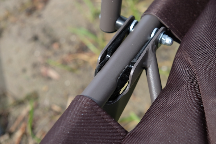Een ander punt wat erg fijn is zijn de grote, brede moddervoeten. Ik heb de stoel regelmatig op een zachte (zand)bodem gezet en de pootjes zakken daar niet in weg.