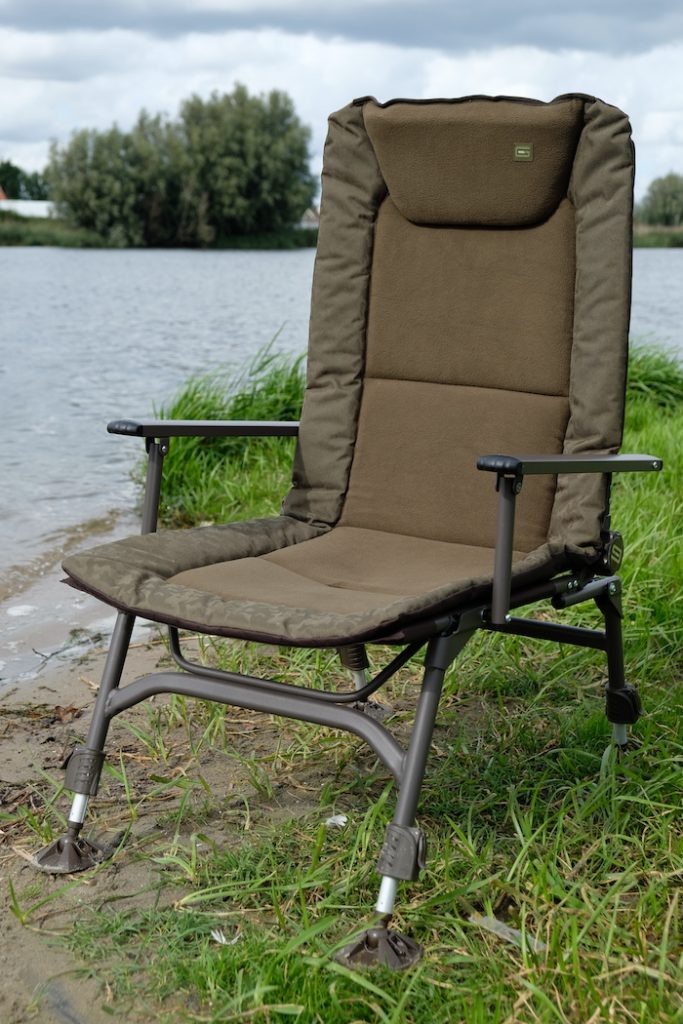 Wat als eerste opvalt is het twee kleuren pallet. De buitenrand, het zogenoemde ??cocoon gedeelte’ is voorzien van een donkergroene camouflagepatroon. Dit geeft de stoel echt een onderscheidend karakter en een ??carpy’ look, dus daar ben ik echt heel positief over.