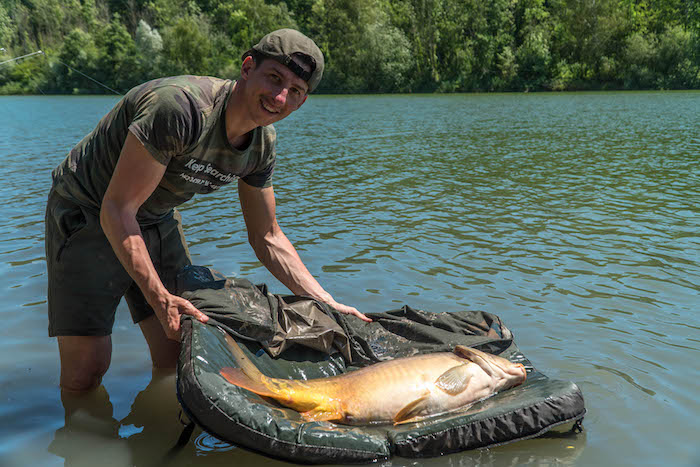 Ik gebruik de nieuwe mat voor het eerst tijdens onze teamsessie op het Franse Jurassik Carpe. De actie laat niet lang op zich wachten en dus kan de mat zich direct in de praktijk bewijzen!