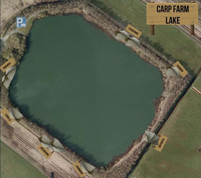 De vissen kennen het water op hun duimpje en zullen de dieptes gebruiken om het je extra lastig te maken. Meer dan genoeg uitdaging dus! In totaal zwemmen er ongeveer 300 karpers rond op CarpFarm Lake.
