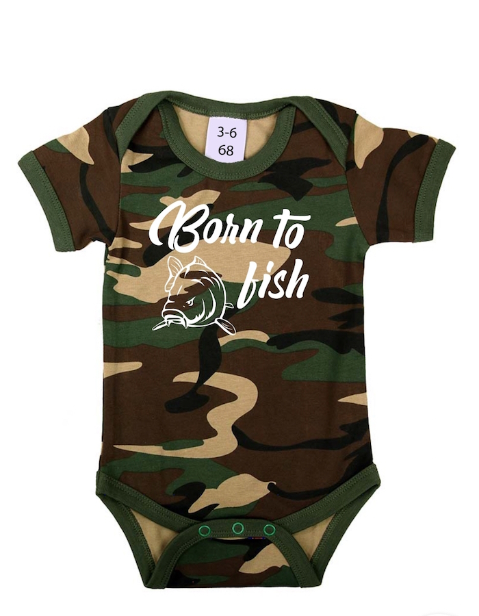 House of Carp: Speciaal voor het allerkleinste visje uit de vijver hebben wij rompertjes toegevoegd aan het kledingassortiment van House of Carp. Deze romper is hét perfecte cadeau om je vissende partner, vriend, vriendin, broer of zus te verrassen bij de geboorte of met het eerste verjaardagsfeestje (geschikt vanaf 0-2 maanden tot 24 maanden). De rompertjes hebben een camouflage kleur en kunnen naar wens worden bedrukt met 4 verschillende prints in 2 verschillende kleuren voor slechts ?11,95 per stuk.