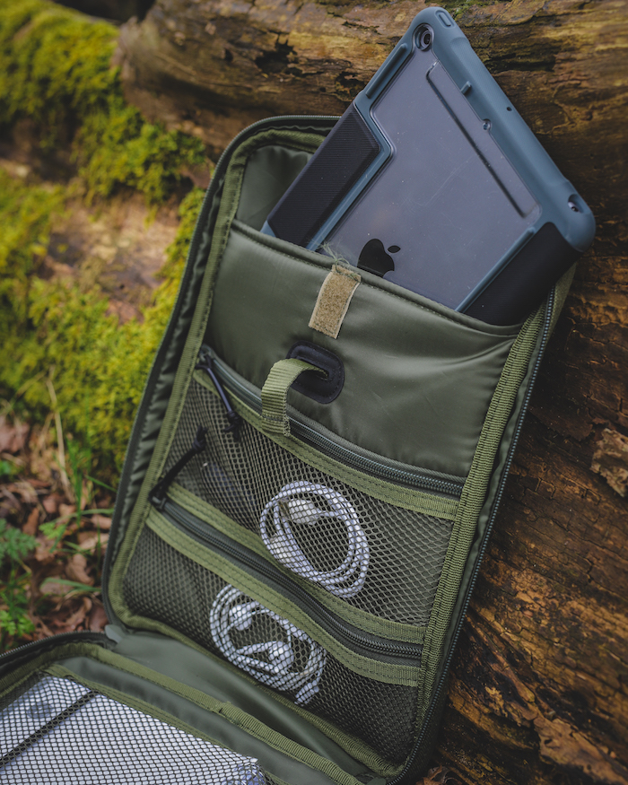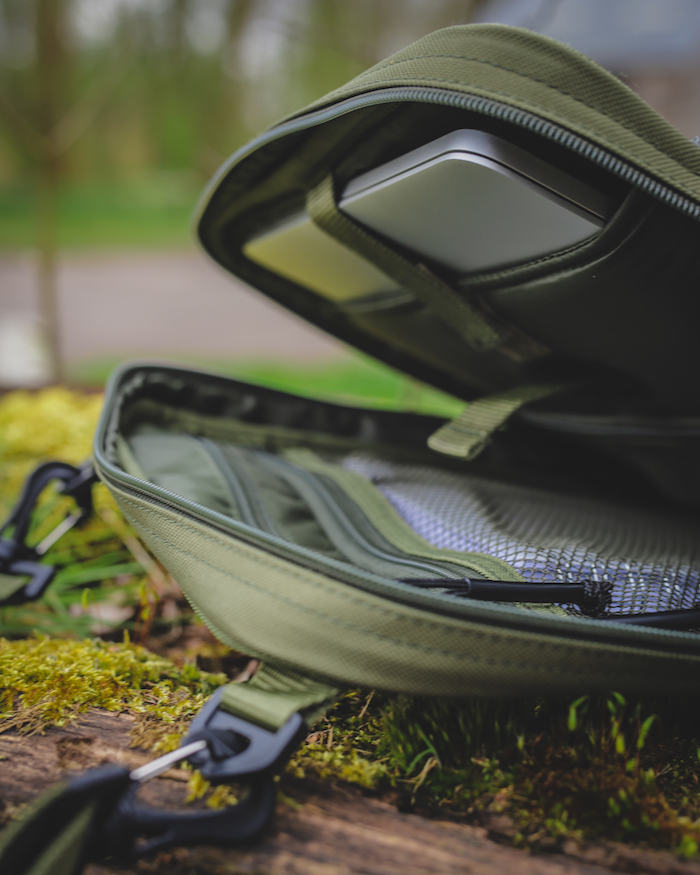 Het gevoerde NXG-materiaal biedt een slijtvaste beschermende buffer voor de waardevolle inhoud en hij heeft dubbele ritssluitingen die volledig opengaan voor maximale toegang. Eenmaal binnen is er een speciaal groot binnenvak met uitwerp riem die is ontworpen voor tablets tot de grootte van een Ipad Pro. Verdere opslag is beschikbaar in de vorm van een volledig binnenvak en drie gaasvakken met ritssluiting zorgen voor extra opbergruimte van andere items.
