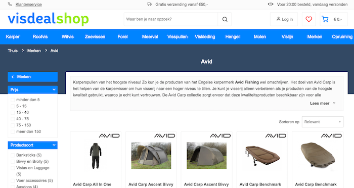 Bij de uitbreiding van het Visdealshop assortiment is flink rekening gehouden met ons karpervissers, want ook het kwaliteitsmerk Avid Carp is tegenwoordig in de shop te verkrijgen! Dit Engelse merk is al vele jaren erg populair in heel Europa en gelukkig zijn de producten steeds eenvoudiger verkrijgbaar. De Visdealshop heeft nu al een assortiment bestaande uit bivvy’s, stretchers, kleding, onthaakmatten en ga zo maar door. Ook dit assortiment wordt nog flink uitgebreid. Houd deze shop dus goed in de gaten, want dit zijn niet de enige nieuwtjes. In een volgende update gaan we verder in op de andere nieuwe Carpy toevoegingen aan het assortiment!