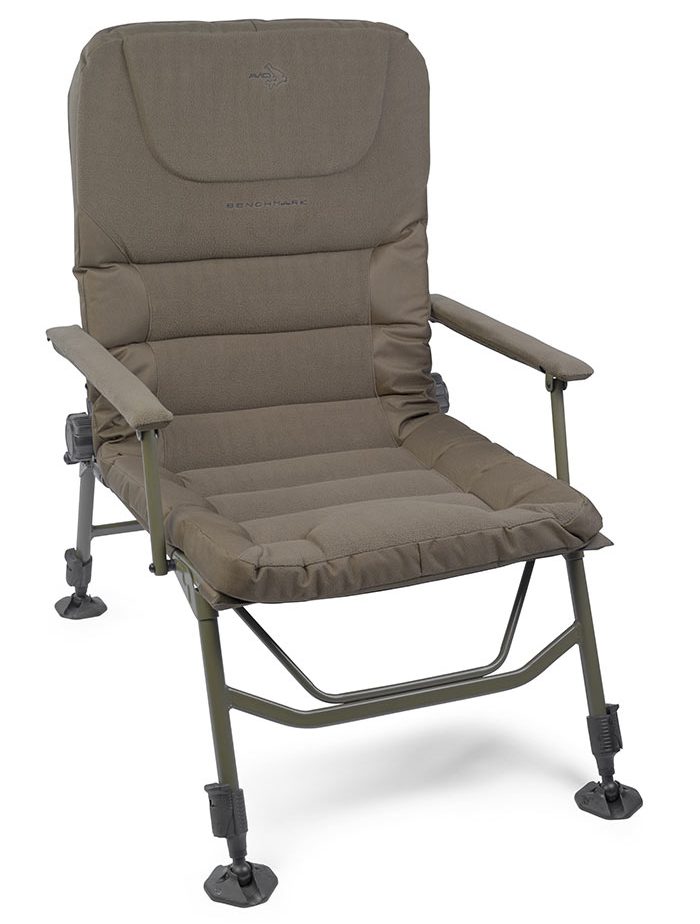 De Benchmark Memory Foam Recliner heeft een extra hoge rugleuning met een ingebouwde verhoogde hoofdsteun. Deze ondersteunt je nek wanneer je gedurende de sessie een langere tijd zit. De stoel is verder voorzien van het Rock Steady systeem, waardoor je altijd uiterst stabiel zit. Verder heeft de stoel extra grote moddervoeten, gevoerde armleuningen en een verstelbare rugleuning. Zo weet je zeker dat je lekker zit aan de waterkant! Richtprijs: ?189,99.