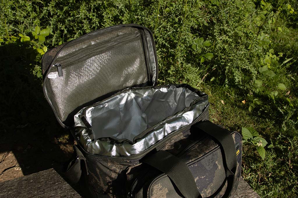 Solar: Een gloednieuwe aanvulling op onze populaire UnderCover Camo Luggage Range is deze Cooler Bag! Bomvol features en vervaardigd uit ons unieke 600D UnderCover Camo materiaal, is deze goed geïsoleerde koeltas ideaal voor de warme, zomers condities. Voorzien van een groot voorvak voor gasbusjes, bestek en kookgerei is het de ideale aanvulling op de range. Door de verstelbare schouderband, handvaten en verstevigde bodem kan deze tas ook perfect worden gebruikt om aas in te vervoeren(freezersbaits of voor het struinen/floatervissen). Adviesprijs: €44,44