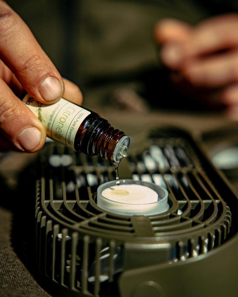 Je sluit de Bivvy Fan aan op een USB powerbank en heeft een laag stroomverbruik. Als extra optie heeft Trakker ook een absorptie pad in deze USB Bivvy Fan ingebouwd. In dit absorptie pad kan je citronella vloeistof doen die vervolgens door de ventilator zal worden verspreid. Perfect tegen de muggen!