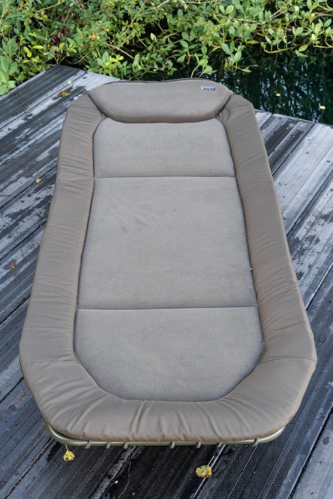 De combinatie van een magnesiumlegering frame met het luxe memory foam matras en een slaapzak maken de Benchmark Lite Memory Foam System zowel lichtgewicht als comfortabel. Het is ontworpen voor sportvissers die met zo min mogelijk gewicht willen reizen, zonder dat ze compromissen willen maken qua comfort. De instelwielen zijn verwijderd van het bed om gewicht te besparen en om een compleet flat profiel te creëren voor een goede nachtrust. Het systeem is snel op te zetten en is voorzien van een met fleece gevoerde 3-seizoenen slaapzak.