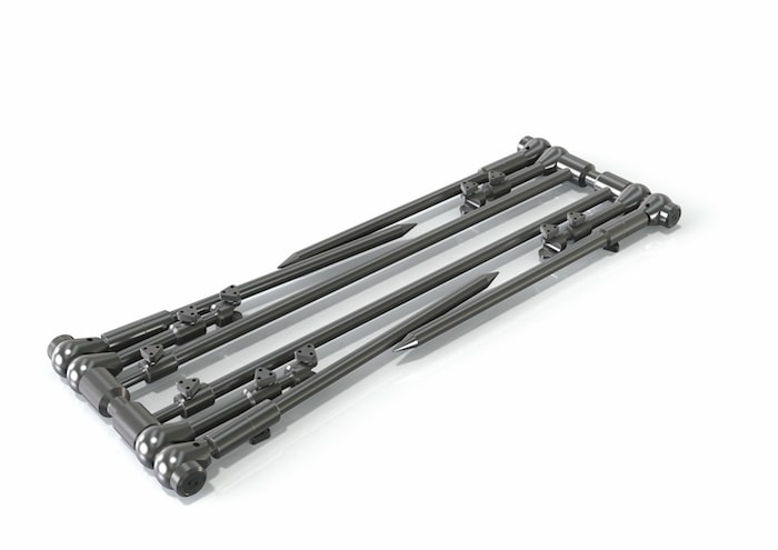 De voor- en achterpoten van de rodpod zijn in zowel 22,5º, 45º en 90º te vergrendelen zodat je in alle mogelijke situaties uit de voeten kan. Zo kan je jouw setup als een ware tackle-tart strak tegen de grond zetten of met de hengeltoppen de lucht in.