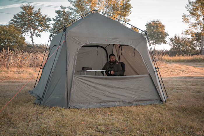 Adaptive Ventilation? tilt het comfort aan de waterkant naar een hoger niveau door de luchtstroom door de shelter te maximaliseren en de condensatie aanzienlijk te verminderen. Vier grote ventilatieopeningen aan de achterkant in combinatie met het Insect Panel zorgen voor 360 graden ventilatie. Als het weer verandert kan het slim ontworpen ventilatiesysteem halfopen worden gezet, waardoor lucht kan rondstromen zonder dat er regen binnendringt. Dit biedt ook gemoedsrust als je wilt slapen in een goed geventileerde shelter.