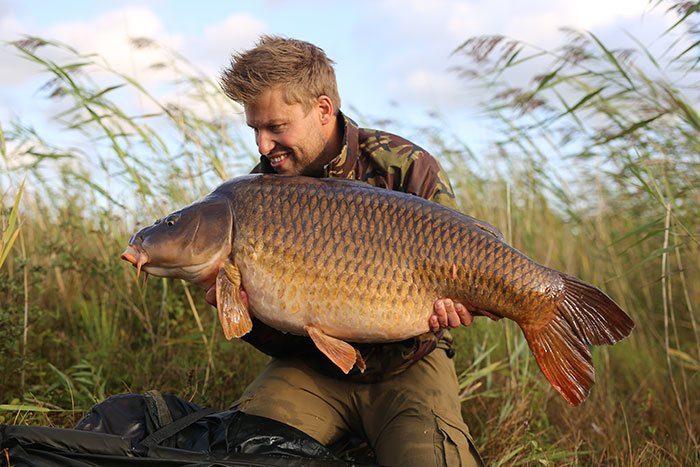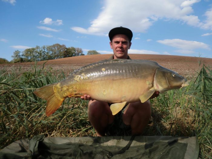 Niels met een fraaie spiegel die in een heerlijk zomers decor viel voor het aas van Baitworld. Kan het nog beter?
