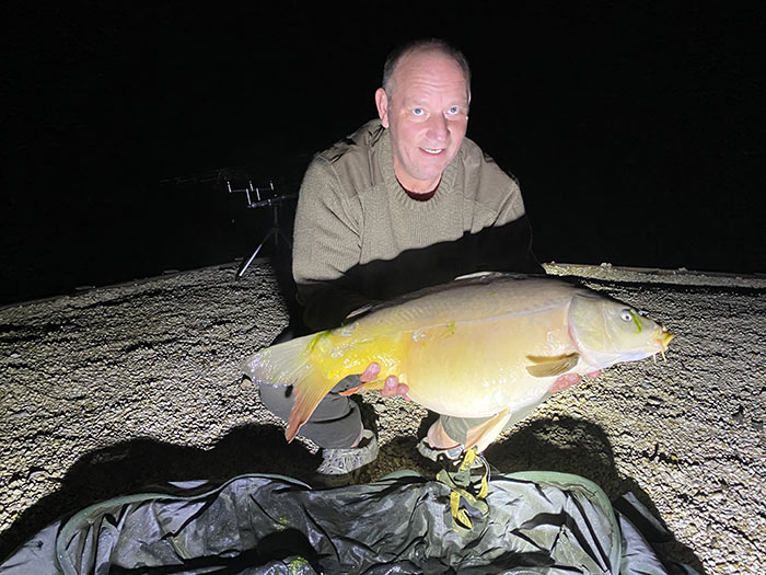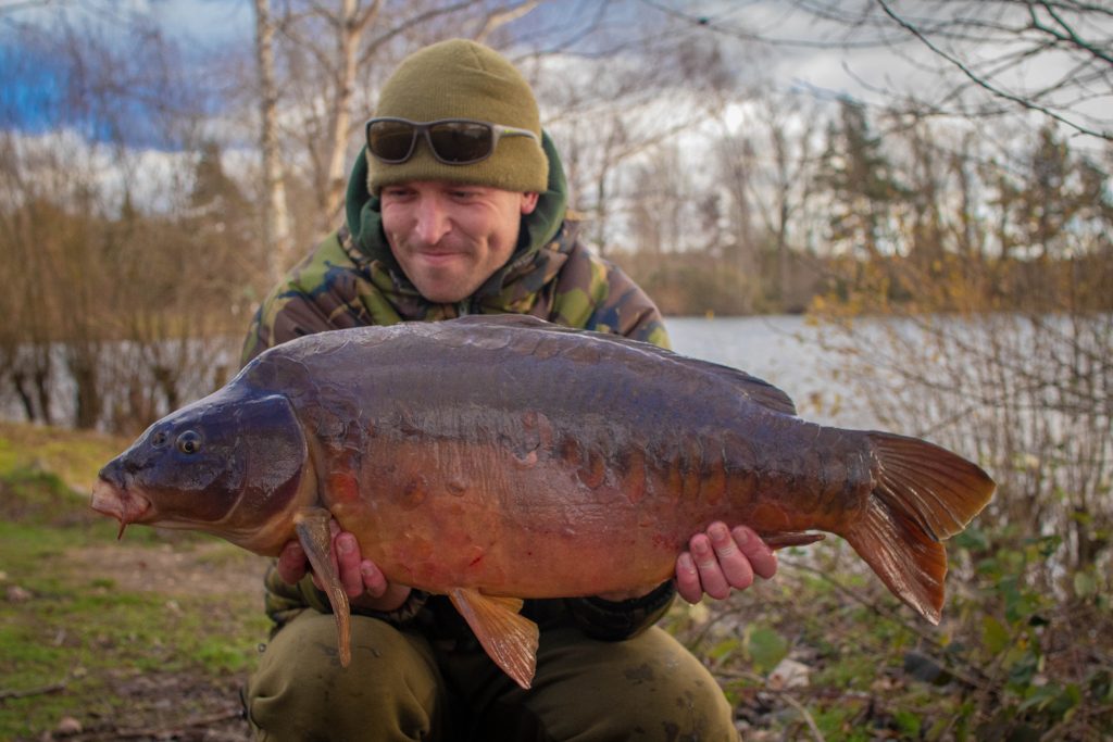 Een mooie spiegel (bijna leder) was het slachtoffer van de eerste boilie ooit. De vissen hebben tot afgelopen vrijdag nooit een boilie gezien of gegeten, dus best spannend hoe de eerste reactie zou zijn. Het gevoel was enorm, na jaren voorbereiding en hard werken kon er eindelijk weer gevist worden! Een zeer speciaal moment.
