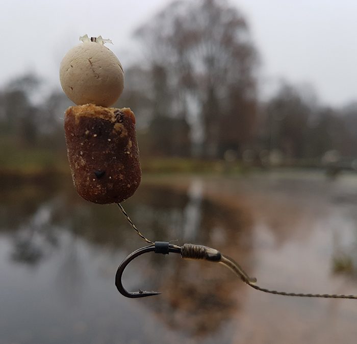 Om niet op n paard (of karper 😉 ) te wedden maak ik vaak gebruik van verschillende aaspresentaties. Ondanks dat er steeds meer artikelen verschijnen waarin mensen beweren dat de snowman zijn beste tijd heeft gehad, vis ik eigenlijk altijd met deze presentatie. De combinatie van een bodemaasje en een opvallende pop-up blijven voor mij een gouden combinatie. Ook kun je met een beetje snijwerk zorgen dat je presentatie bijna gewichtsloos is. Het komt erop neer dat de karper bij het opnemen van de rig minder argwaan heeft. Je haak zit dus al in zijn lip voordat hij kan bedenken dat het foute boel is!