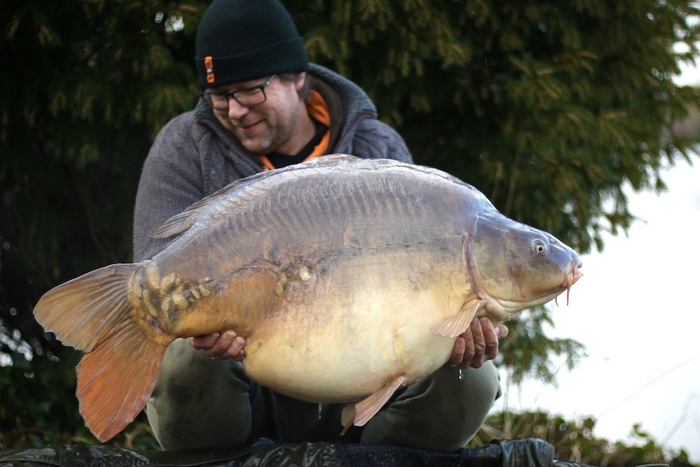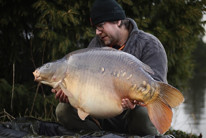 De nacht verloopt rustig op De Koperen Plas en ik heb heerlijk geslapen in mijn verwarmde tent, die voorzien was van een elektrische kachel. Ideaal die stroom op de stek! De volgende ochtend lig ik nog lekker in mijn slaapzak als ik een voorzichtige oploper krijg. Na een stevige dril land ik een puntgave spiegel, die 18 kilo aangeeft op de weegklok. Dit maakt de losser van gisteren weer een beetje goed! Na deze prachtige goedmaker, vaar ik mijn chod-hengel bewapend met een dumbell van The Baits natuurlijk direct weer uit!