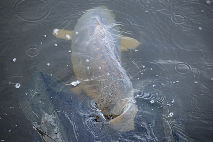 Al snel blijkt mijn tactiek te werken, want de eerste hengel loopt binnen twee uur af. Wat volgt is een flinke dril die aanvoelt als een serieuze vis. De vis blijft diep en geeft zich niet gauw gewonnen. Ik zie de vis draaien en OEF, dat ziet er goed uit! De vis geeft nog een flinke dreun, maar dan sta ik met een rechte hengeltop. Ik kijk wat de oorzaak is en zie tot mijn grote verbazing dat de wartel is gebroken… Hoe dan!? Balend en inwendig vloekend kruip ik de tent in om de boel weer in orde te maken. De eerste karper van het jaar is gelost. RUK!!