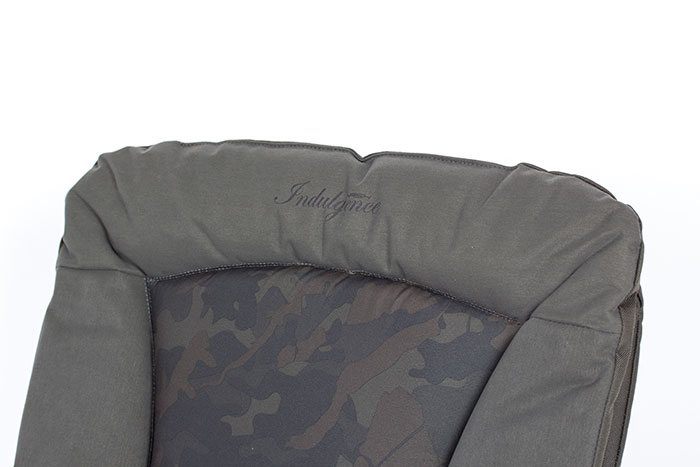 De nieuwe Indulgence Hi-Back chair is herkenbaar aan zijn hoge poten en hoge rug. Deze stoel is ontworpen voor vissers die graag een hoge stoel hebben waar ze hun hoofd lekker tegenkunnen laten rusten. Doordat de stoel ietwat hoger staat dan gebruikelijk is het zitcomfort ideaal voor mensen die lange benen hebben. Tevens is de stoel voorzien van modderpoten die ervoor zorgen dat de stoel altijd goed staat op welke ondergrond dan ook.