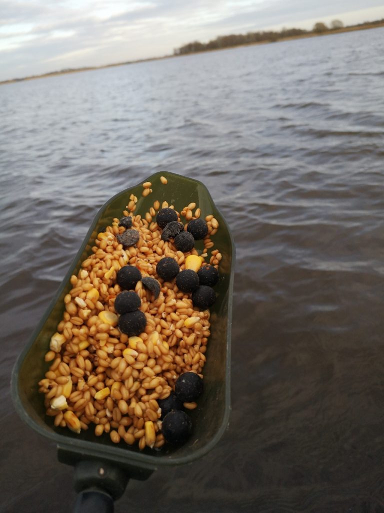 De maïs spreekt blijkbaar toch andere vissen aan en omdat ik tijdens de sessie alleen boilies voer, proberen die vissen bij gebrek aan mais makkelijker een boilie. Dat is dus ook de manier om witvis te omzeilen! De dagen dat ik voorvoer maak ik gebruik van boilies in combinatie met partikels (in mijn situatie maïs), maar tijdens de sessie zelf komt er geen korrel meer aan te pas. Tot slot produceren de hardere partikels zoals tijgernoten en hennep een “krakend ”geluid tijdens het eten. Geluid draagt onder water heel ver. Op deze wijze maak je ook vissen van ver buiten je voerstek attent op het feit dat er wat te halen valt. Dat is de reden dat ik graag een paar handen tijgernoten tussen mijn boilies meng.