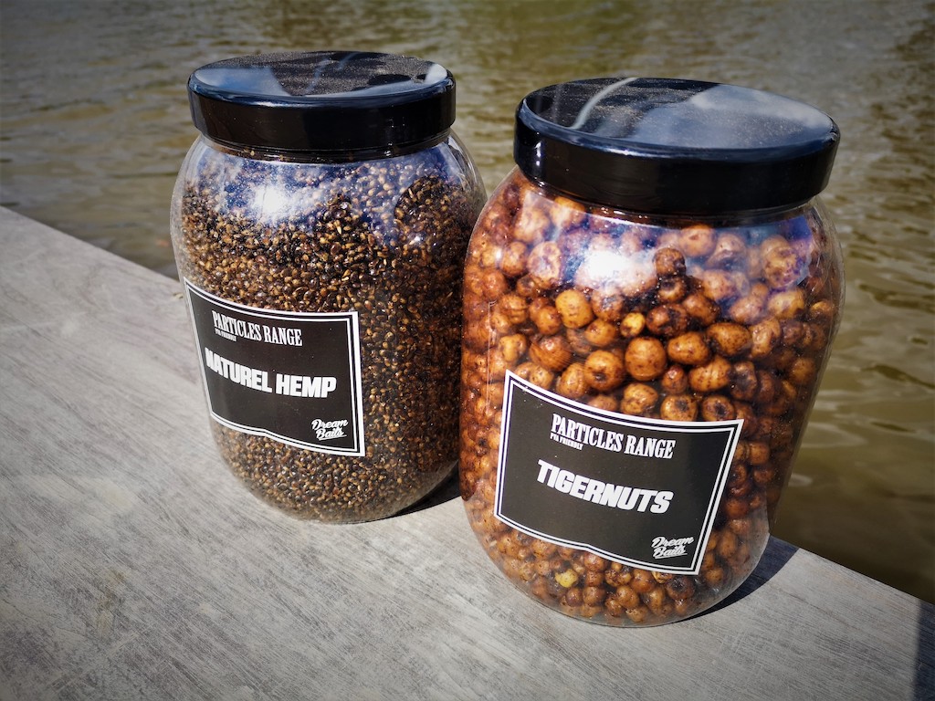 Onder partikels vallen eigenlijk alle soorten bonen, granen, zaden en noten die we in de karpervisserij gebruiken. Sommige van hen zijn kant en klaar of vaak in potten te koop in de hengelsportzaak. Deze zijn ideaal om mee te nemen als je een alternatief achter de hand wil hebben tijdens je sessie. Het grote voordeel is natuurlijk dat ze lang houdbaar zijn en je ze dus kunt gebruiken wanneer het jou uitkomt. Daarnaast zijn er partikels in droge vorm te krijgen wat je keus enorm doet toenemen. Iedereen kent natuurlijk tijgernoten, mais en hennep, maar je kan ook denken aan pinda’s, kikkererwten, tarwe, maples of andere erwten.