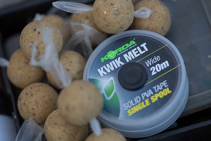 Zelf gebruik ik inline lood in combinatie met de soepele onderlijn. Karpers komen zo’n presentatie zelden nog tegen. Om er zeker van te zijn dat mijn onderlijn netjes op de bodem komt te liggen maak ik gebruik van een kleine stringer of PVA netje. De afstand de ik wil bereiken met het werpen zal hierdoor nauwelijks wordenbenvloed. Een andere optie die ik nog wel eens gebruik is een PVA schuimpje aanbrengen op de haak.