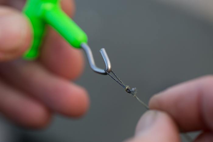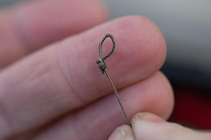 Maak een lus aan het einde van de onderlijn om deze makkelijk aan een quick change wartel te kunnen bevestigen.