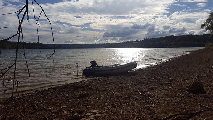 Ik legde mijn uitrusting snel in de boot en ik was klaar om over te varen. Althans, dat dacht ik, want mijn motor startte niet meer! Ik had inmiddels de blaren op m’n handen staan van het aantrekken maar het was toch echt 1-0 voor de benzinemotor.Gelukkig had ik ook mijn elektromotor nog bij me, maar de accu lag uiteraard ergens onderop! Eenmaal aan de overkant liet ik de rigs, voorzien van Red Liver boilies,snel te water. Vervolgens kon ik licht verbrand en hongerig bij mijn tentje plaatsnemen.