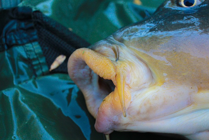 Rond half 7 in de ochtend krijg ik een volle fluiter en sta ik binnen enkele minuten met een hoepelkromme hengel in mijn handen. Maar plots komt de vis op een afstandje boven met een behoorlijke kluit wier. Is dit nou een brasem? De vis laat zich aan de oppervlakte mee slepen en duikt plots onder om er volgas vandoor te gaan. Hoppa het is dus een karper! Na een zenuwslopende dril weet DJ een dikke spekrug te scheppen en de tweede vis van de sessie is een feit.