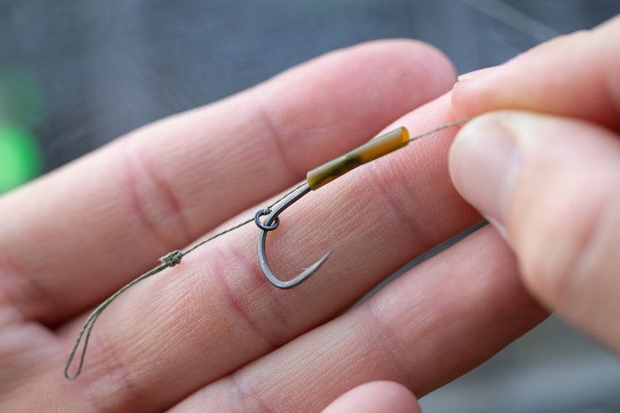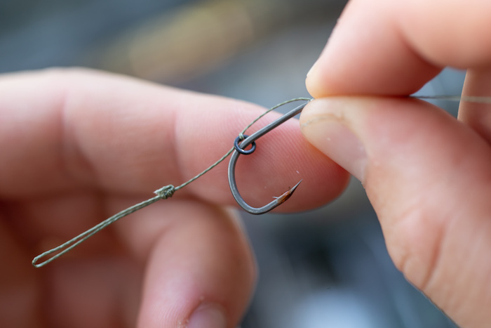 Door te kiezen voor een zo scherp mogelijke haakpunt (Korda Kamakura) vergroot je de kans dat deze bij een opname prikt. Dat telt voor zowel de combi rigs die ik met mijn bodemaas vis als chod of hinged rigs met een pop-up. De rigs gaan ook echt pas te water als ze helemaal perfect zijn en worden bij de eerste twijfel vervangen. Ik ben echt kritisch en het kan gebeuren dat ik zelfs na een brasem de onderlijn vervang!