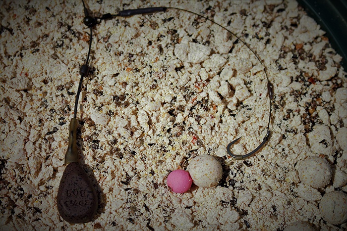 De haken werden geslepen en een nieuwe voorraad onderlijntjes geknoopt. Harde plekken waren nauwelijks te vinden, het was met name zachte prutbodem van soms wel een halve meter. Gezien de activiteit in onze zone leek de vis het niet te deren. Om toch effectief op deze ondergrond te vissen viel de keuze op een helikopter montage waarbij de bovenste kraal op een centimeter of 35 boven het lood werd geplaatst. Qua loodgewicht was 50-70 gram meer dan voldoende om de vis te haken. De onderlijnen bleven wel relatief kort, om zo een snelle prik te bewerkstelligen op de kleine, attractieve voerplekjes. Attractief aangeboden pop-ups op de immens populaire ronnie-rig werkte ook hier prima, net als een simpel maar effectief snowmannetje.