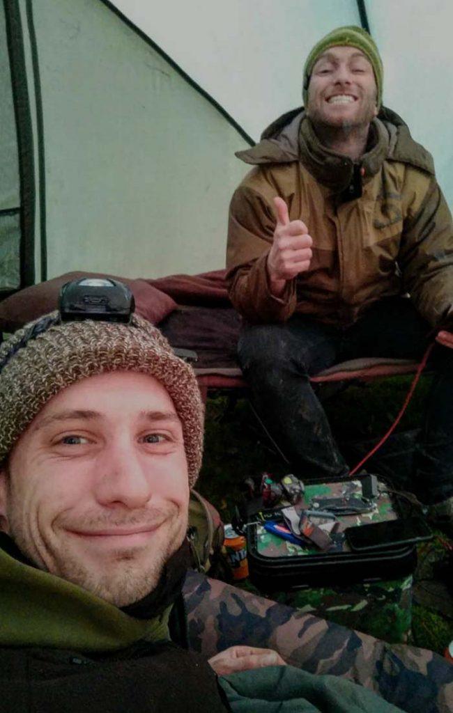 Al filosoferend over hoe de hengels gepositioneerd zijn en wat voor bestand aan karper er zou zwemmen krijgen we een piep op Bart zijn rechter hengel.. met gespitste oren luisteren we vanuit de bivvy of de delkim zijn meest geliefde toon doorzet.