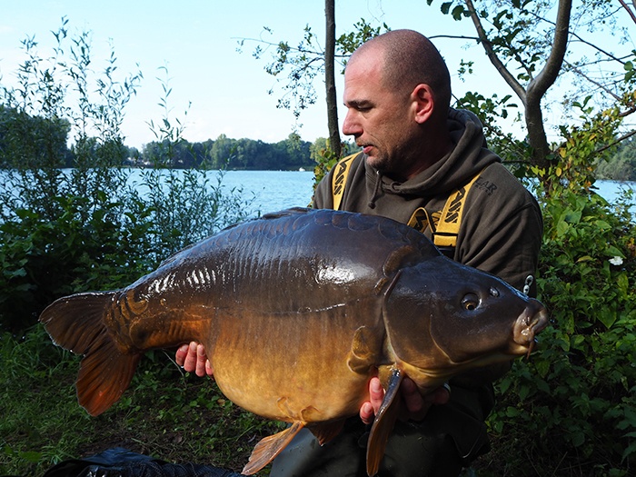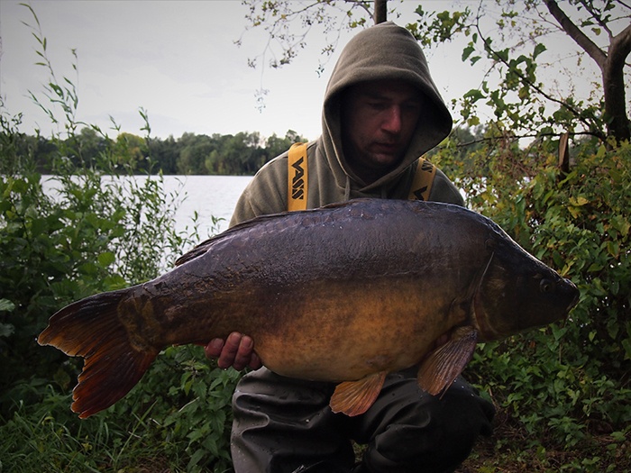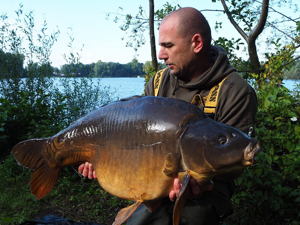 Wegingen inmiddels de voorlaatste nacht in en onze honger naar eenflinke vis iswas nogniet gestild. Met maar enkele karpers en eenberg aan brasem, steuren en ander gespuis hadden we de vistrip anders voorgesteld. We gaven echter niet op en de hengels werden wederom ‘spot-on’ neergelegd, samen met wat verse bollen. Het was inmiddels verre na middernacht, wanneer er plotsenkele tonen door mijn sounderbox vlogen. Snelsprintte ik richting de hengel en even later rustte er een prachtige spiegelkarper in mijn net van ruim in de 30 pond.