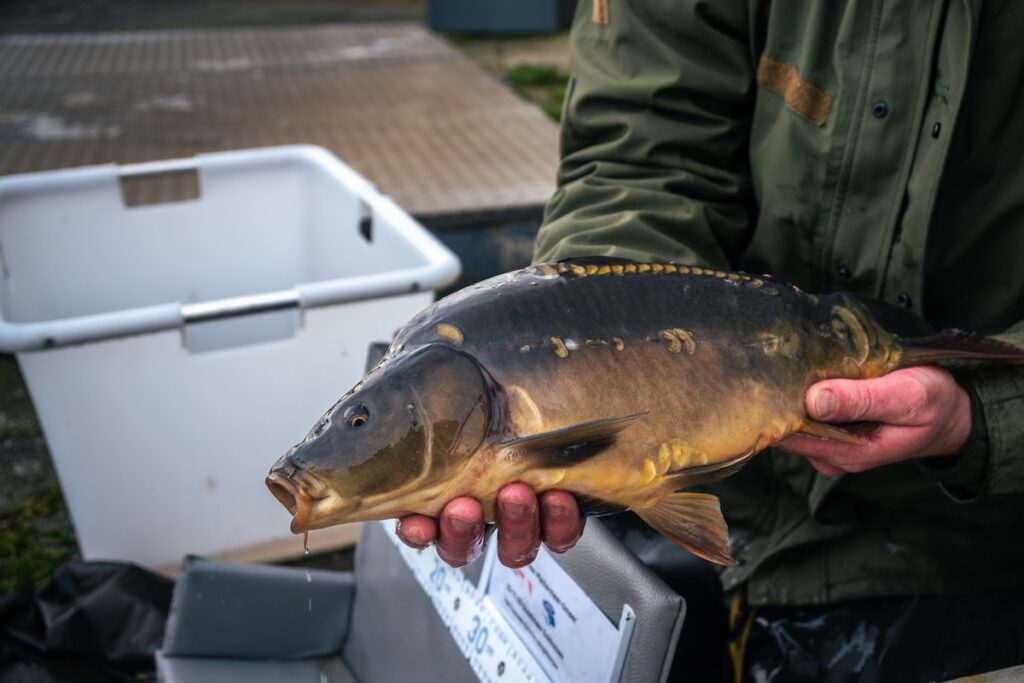 De karpers worden stuk voor stuk vastgelegd om monitoring mogelijk te maken.