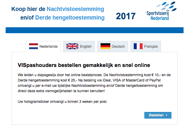 Buiten het visseizoen vissen: ? 95 (in 2017 was dit ? 90,- voor de roofvissers onder ons)