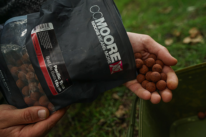 Bij dergelijk verspreid voeren ben ik ervan overtuigd dat je beter af bent met hoger staande pop-ups en iets langere onderlijnen. De vissen zwemmen immers van het ene aasje naar het andere. Bijkomend voordeel is dat je bij het gebruik van deze rig ook nooit gehinderd wordt door het lage wier.