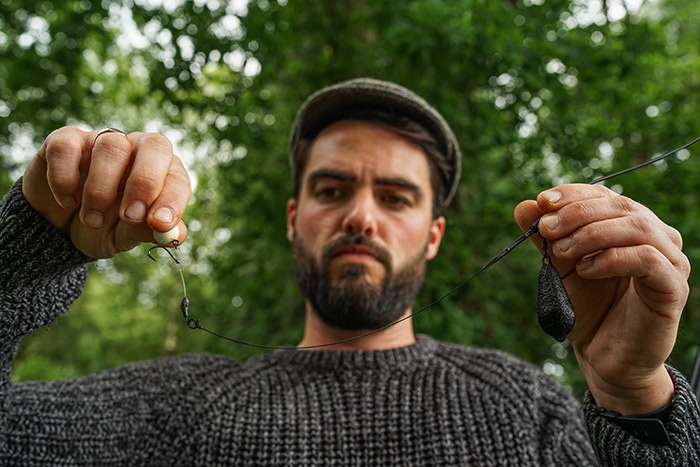 Deze manier van vissen en voeren leent zich ook perfect voor mijn favoriete onderlijn, namelijk de Hinge (Stiff) rig, waarbij ik krachtig drijvende pop-ups gebruik op een vrij lang stijf pop-up gedeelte.