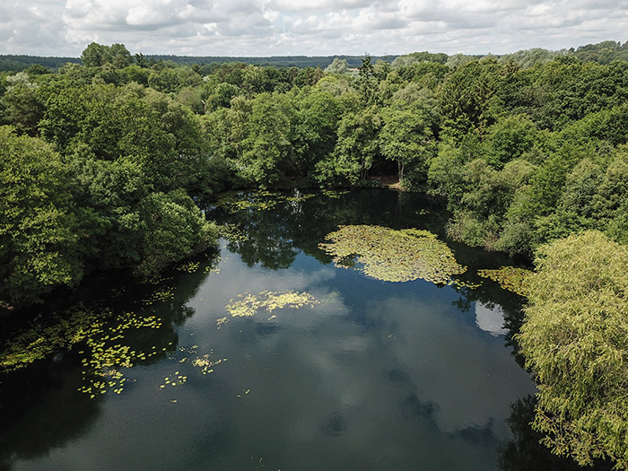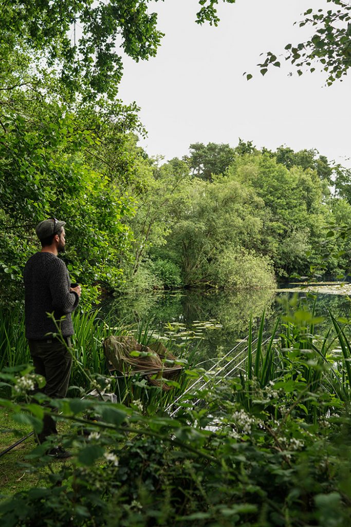 We komen midden in namiddag aan en de zon brandt op het water. Gelukkig staat er een welgekomen, verfrissend briesje veroorzaakt door de stokoude bomen rond het water. Taverham Mill is een oud grindgat, nog voor de oorlog gegraven, en heeft zowat alles wat een karperwater hebben moet: lelievelden, wier, grindplateau’s, eilanden en obstakels. Karperhaven, jawel! Dat resulteert natuurlijk in heel wat interessante spots en stekken en heel wat opties om te bevissen. Grof gezegd laat het water zich opdelen in twee grote baaien en een centraal gedeelte.