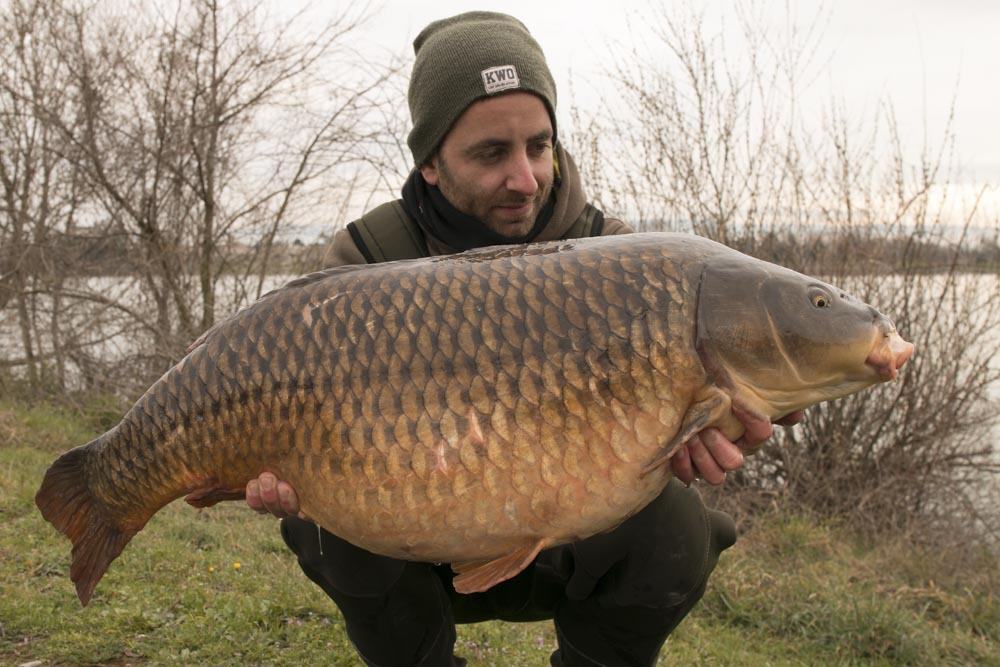 Roel van Uden pakte zowaar twee karpers in een besneeuwd decor. Deze schub was de grootste! Knap gedaan Roel.