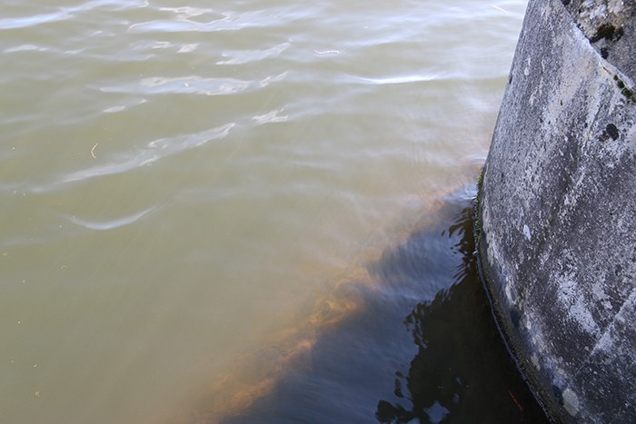 Midden in de tuin staat een waterput in het water. Deze is gestut door grote puinbrokken en gelukkig loopt de bodem rondom deze grote stenen wat minder snel af. Hier moeten de vissen omheen zou je zeggen! Het loopt gestaag naar een diepte van tien meter en zakt af tot twintig meter in de vaargeul. Twee hengels leggen we ondiep, tussen de n en drie meter, en de diepste hengel komt tussen de vijf en zeven meter te liggen.
