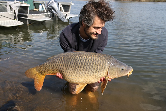 Ondanks de drukte en voorbereidingen die verhuizen naar Frankrijk met zich mee brengen, zijn de hengels ook al meermaals te water gegaan. En niet zonder resultaat! We wilde tijdens onze verhuizing en werkzaamheden ook inzicht krijgen in de vangsten in het vroege voorjaar op dit gedeelte van ‘onze’ stuw. Waar houden de vissen zich op? Diep, ondiep? Vinden we de vissen uit de stroming? Maakt het nog verschil of we op harde of zachte bodem structuur vissen? Hoe reageren de karpers op het nieuwe aas?